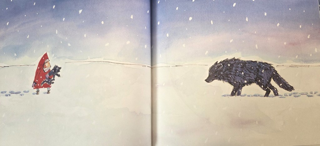 Wenn man ein Buch in Händen hält, auf dem ein Mädchen in roter Jacke und ein Wolf zu sehen sind, dann kann mal als Autor die Referenz zwar verleugnen, aus den Köpfen der Leser wird man sie dennoch nicht bekommen. Man kann die damit einhergehende Erwartungshaltung aber durchaus brechen, indem man dem Wolf nicht den Stempel des Bösen aufdrückt. „Wolf in the snow“ ist weder Märchen noch Rotkäppchenadaption, sondern eine ganz wunderbar eigenständige Geschichte über eine ungewöhnliche Freundschaft, die wahre Natur der Wölfe und die Macht der Hilfsbereitschaft. Und wenn ihr das nächste Mal ein Bild von einem rotgewandeten Mädchen und einem Wolf seht, vielleicht denkt ihr auch gar nicht zuerst an Rotkäppchen, sondern an Matthew Cordells Buch und dass wir alle hier als fühlende Lebewesen auf dem Planeten Erde wandeln.