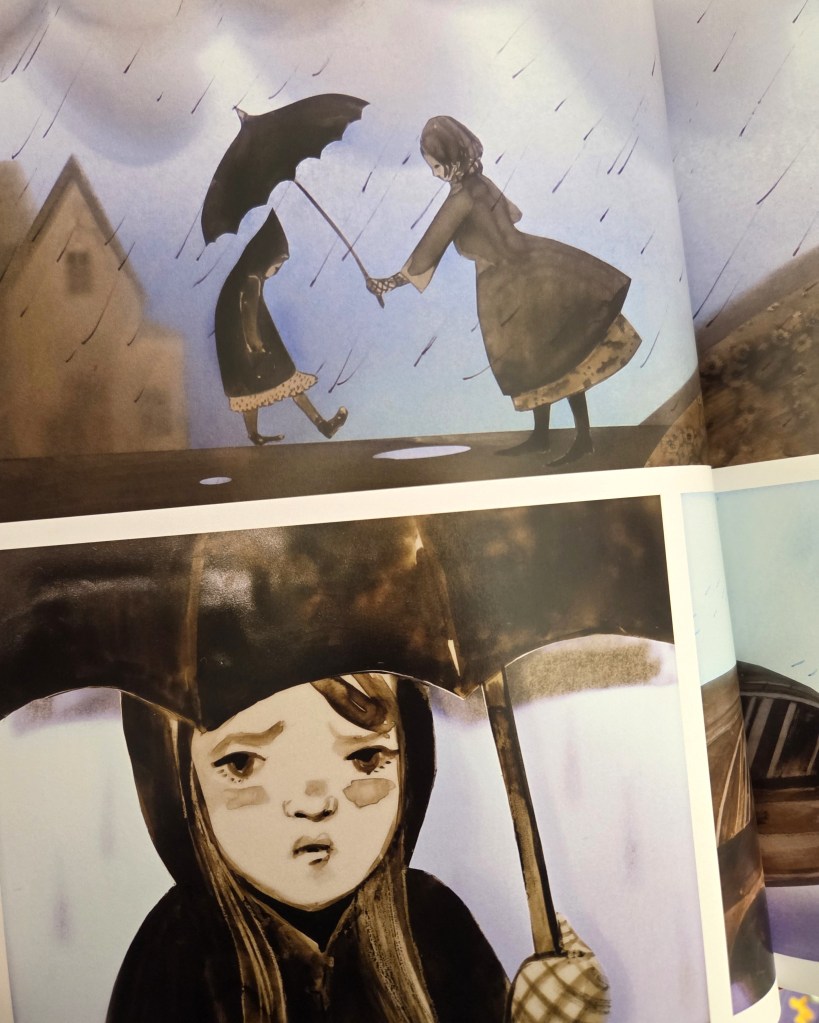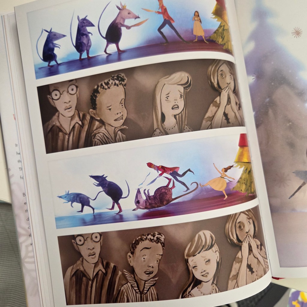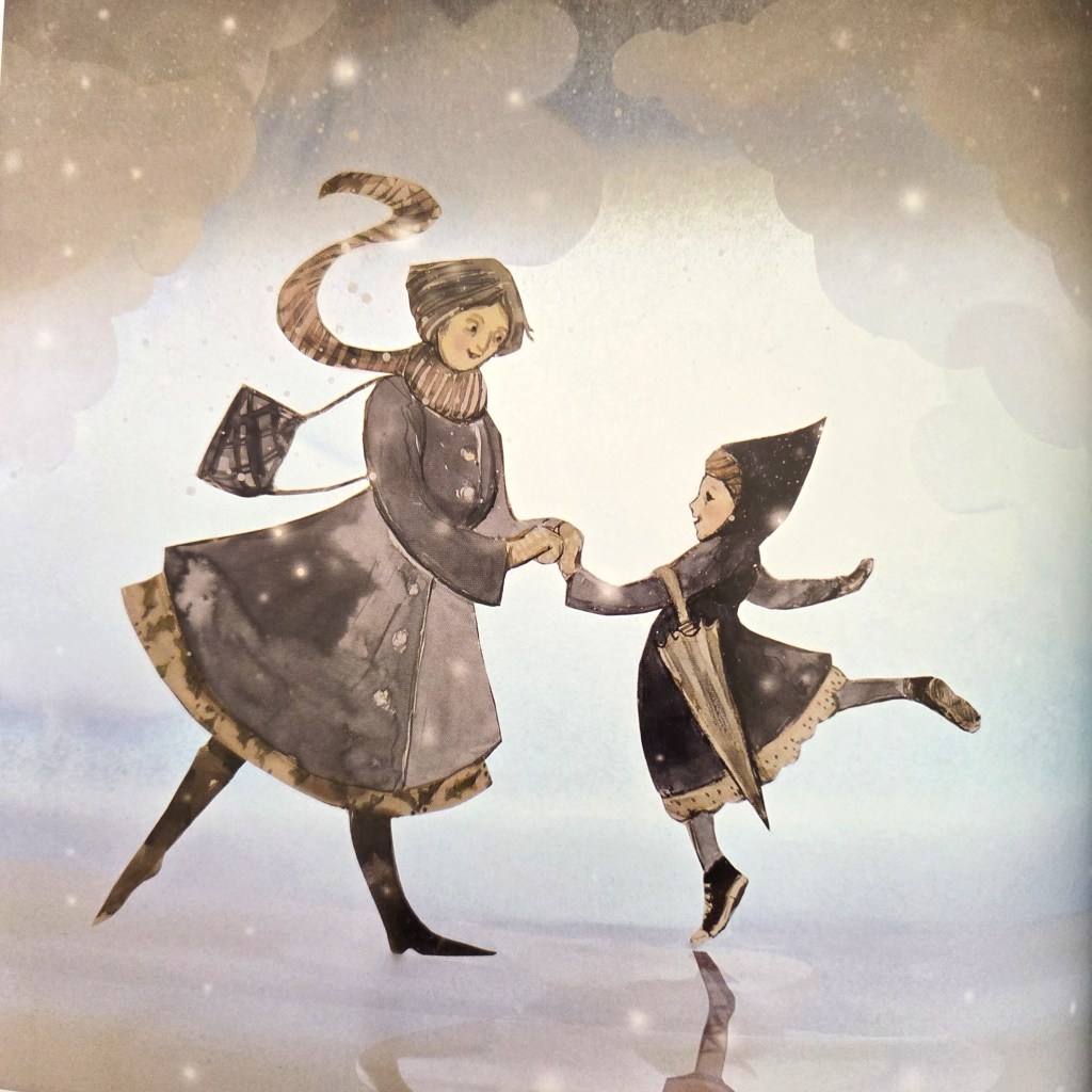 Die Gestaltung von „Waltz of the snowflakes“ strotzt nur so von liebevollen und empathischen Details. Das Mädchen wird zwar adrett ausstaffiert, trägt aber weiterhin ihre Chucks. Es sind diese kleinen Elemente, durch die schnell das Gefühl mitschwingt, in diesem Buch wird es persönlich. In der Beschreibung der Autorin ist angegeben, dass Elly MacKay selbst mit sieben Jahren in schicker Kleidung ins Ballett gebracht wurde. Ob viel von der eigenen Erfahrung darin steckt, weiß natürlich nur die Autorin, aber das Gefühl von gelebten eigenen Erinnerungen bleibt.